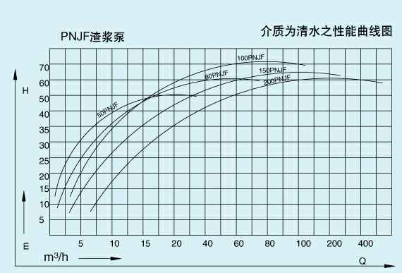 九十年代引进日本技术、研制开发系列渣浆泵,系单级单吸离心式衬胶泵,可输送各类有腐蚀性渣浆及固体颗粒的矿浆。输送矿浆大浓度不超过65%(重量计),温度不得超过100℃,被广泛适用于冶金、矿山、金矿、铜矿、锌矿、铅矿、锰矿、矾矿、石油、化工、煤炭、电力、交通、河流疏浚、建材及市政工程等等工业企业的工况岗位。小型泵采用金属骨及特种橡胶模压成形;大型泵采用活络衬胶,减少维修费用,80PNJF、100PNJF、150PNJF的排出口在270℃范围内可按45℃间隔转不同的方向,在没有特殊说明的情况下,一律为垂直向上出口,泵的旋转方向,为泵盖所示标尖头方向旋转。